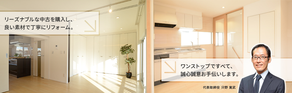 同じ担当者が、物件購入からリフォーム完了、またはリフォーム完了から物件売却まで付き添いますので、ご要望に沿ったお手伝いができます。