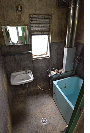 狭くて暗い浴室。 深くて狭い浴槽。 |