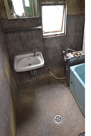 浴室内にあった、使い勝手の 悪い洗面台。 |