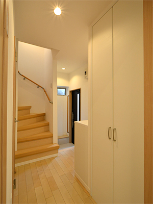 階段室の戸をガラスにすることで、さらに明るく。冷暖房効率もアップ。