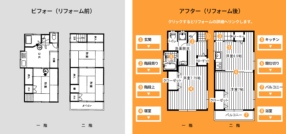 それぞれが小さく区切られていた2部屋。