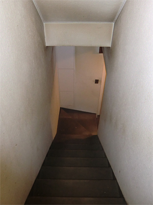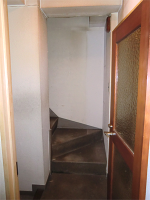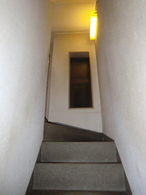 狭く暗い階段。