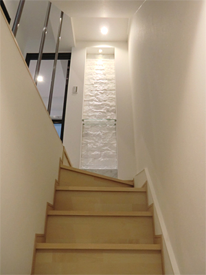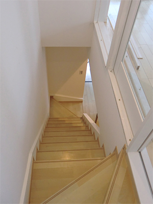 壁をガラスにすることで、階段に明かりを取り込みました。