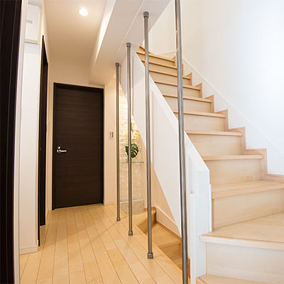 壁を取りのぞき、開放的な階段スペースを実現。
