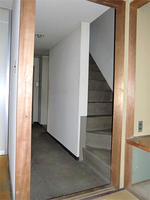 壁で仕切られた階段と廊下。
